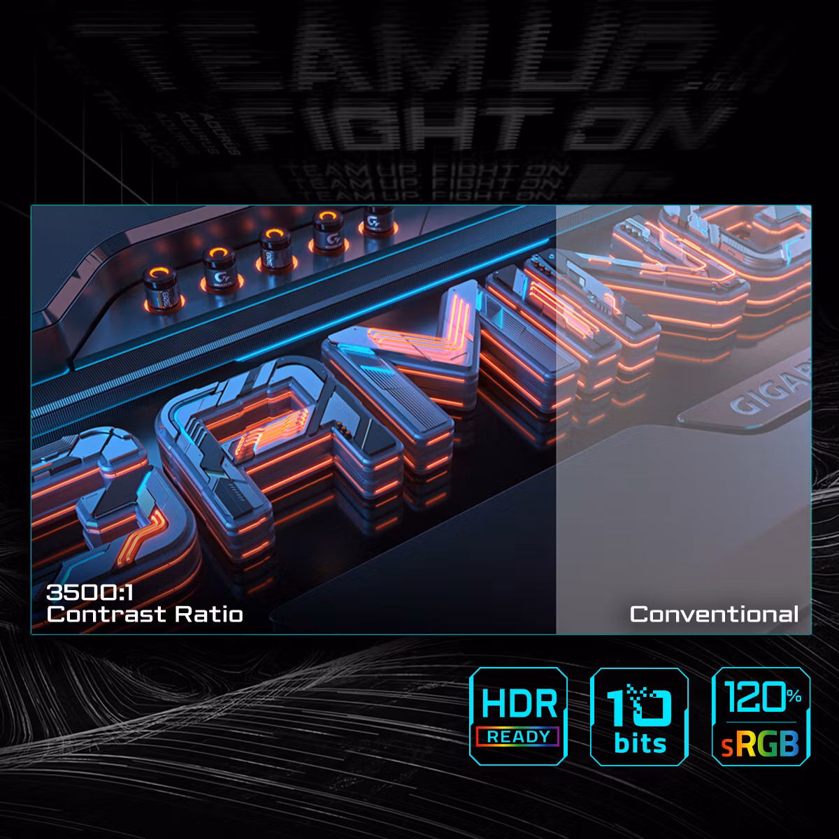 Hög typisk kontrast (~3500 :1) och färgrymd upp emot 120 % sRGB – stark visuell upplevelse.
