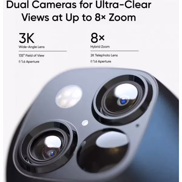 Kameran har en motoriserad panorering på 360° samt vertikal lutning på 70°, vilket eliminerar döda vinklar och gör att du alltid har uppsikt över varje del av din tomt. Med hjälp av AI-styrd spårning följer kameran automatiskt personer eller objekt i rörelse och håller dem i bild, vilket ger dig maximal kontroll utan att du behöver styra något själv. Den här funktionen, i kombination med den dubbla kamerakonfigurationen, innebär att du både kan övervaka hela scenen och zooma in på detaljer utan att förlora helheten.