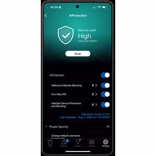 Den kraftfulla hårdvaran, med fyrkärnig processor och 2 GB RAM, gör att routern klarar även de mest krävande miljöerna utan att tappa hastighet. Kombinerat med AiProtection Pro får du ett skydd i världsklass som håller hela ditt nätverk säkert dygnet runt.