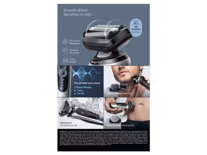 Rakhuvudet är utrustat med avancerade blad och FlexMotion-teknik som gör att apparaten anpassar sig efter käklinje, hals och svåråtkomliga områden utan att irritera huden. Detta gör den särskilt lämplig för personer med känslig hud som vill undvika rodnad och obehag. Med sin effektiva men skonsamma konstruktion kan den användas både för torr rakning och tillsammans med rakgel eller skum, vilket gör den flexibel för olika preferenser.