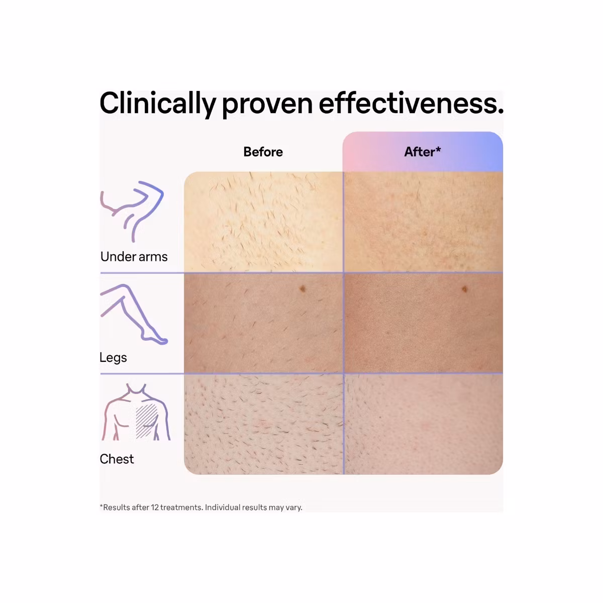 Braun IPL-hårborttagaren passar många olika hudtoner, men det måste finnas en tydlig färgskillnad mellan håret och huden och det måste finnas tillräckligt med pigment i håret. Hårborttagning baserad på ljusimpulser kan därför inte användas för mycket ljusa, röda, grå eller vita hårstrån. IPL är inte lämplig för de allra mörkaste hudtonerna.
