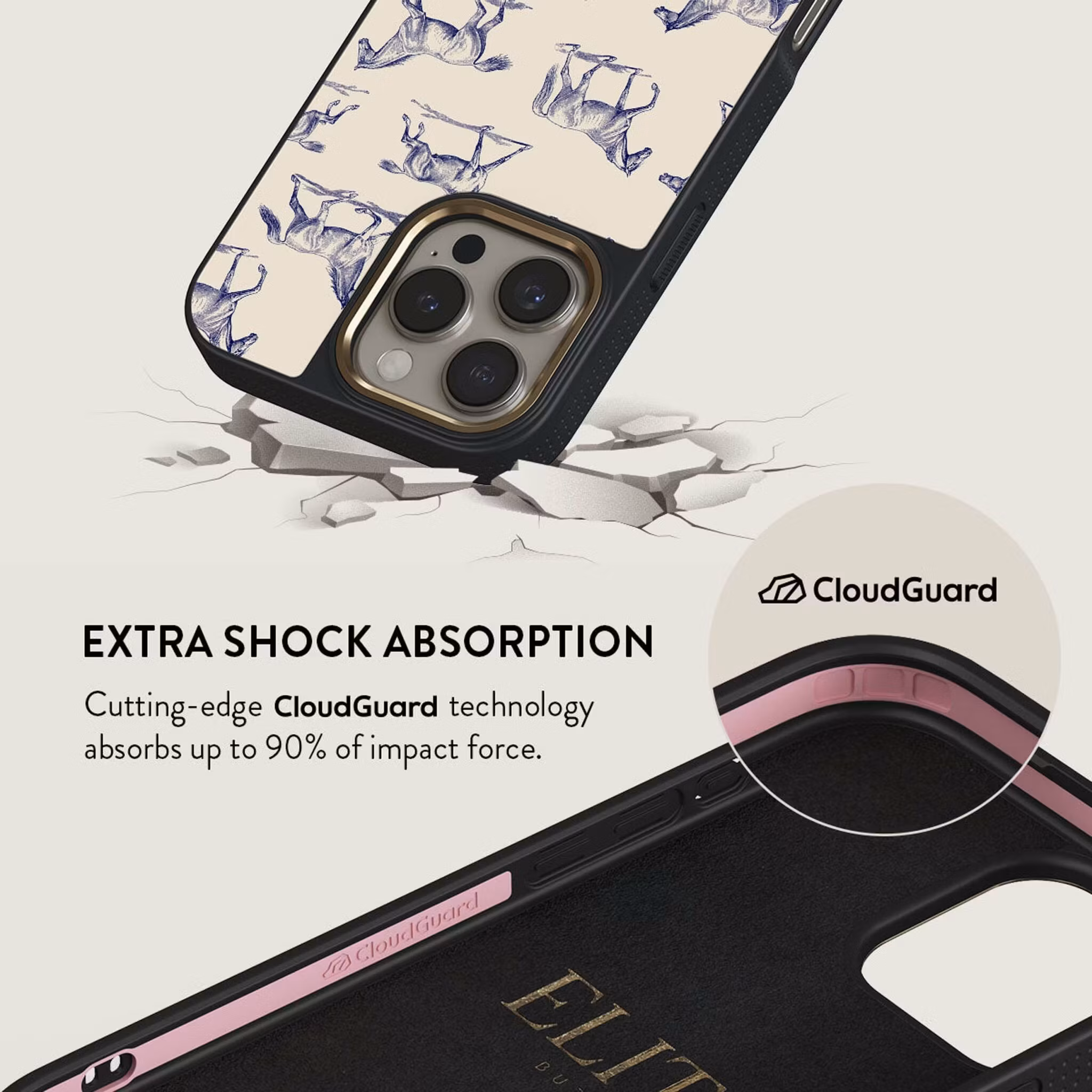 Designen Derby Race i svart och guld ger telefonen ett sofistikerat och premiuminspirerat uttryck som framhäver en exklusiv stil. Samtidigt bygger Elite-konstruktionen på flera skyddslager där en stötdämpande kärna samverkar med ett hårdare ytterhölje. Denna uppbyggnad hjälper till att absorbera kraften från fall och slag, vilket minskar risken för skador på telefonens hörn och baksida och gör skalet lämpligt för daglig användning i olika miljöer.