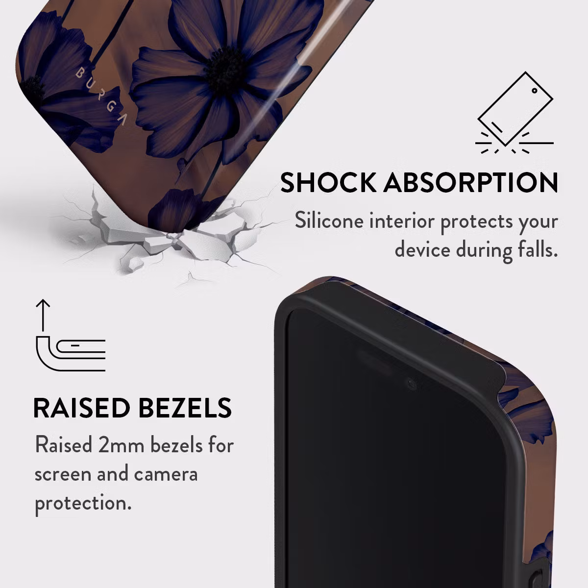Den exakta passformen gör att telefonens funktioner förblir fullt tillgängliga. Upphöjda kanter runt skärm och kamera bidrar till extra säkerhet och gör att telefonen klarar vardagliga påfrestningar bättre.