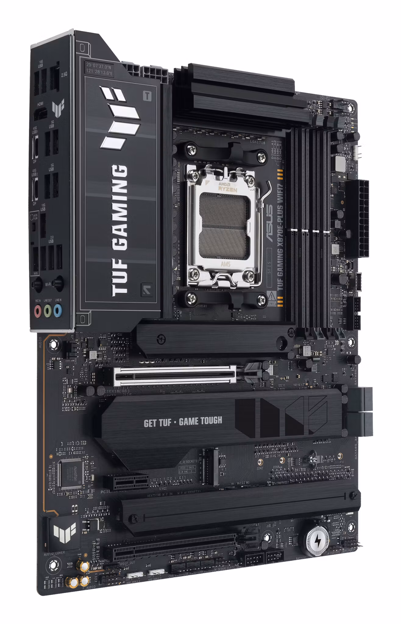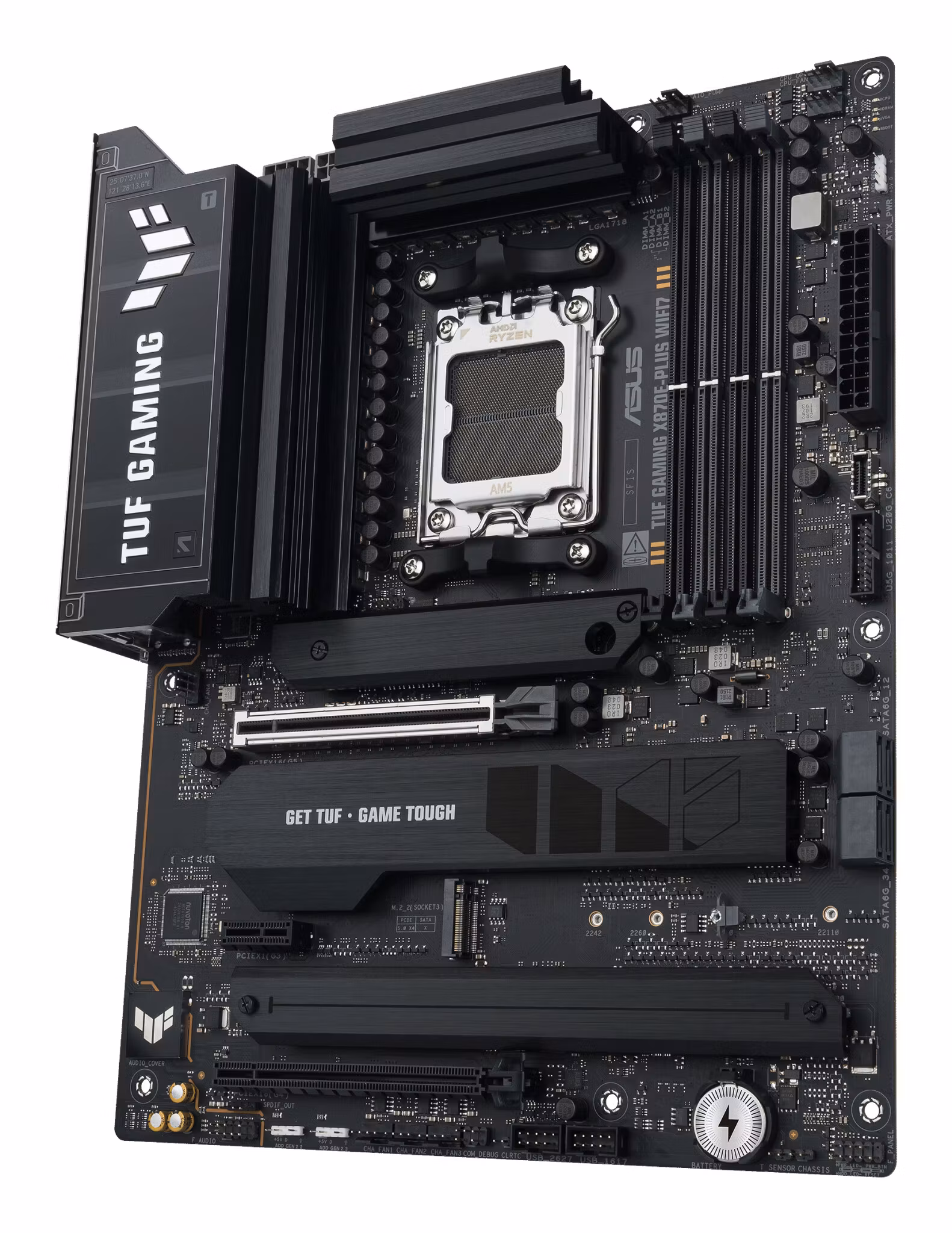 ASUS TUF GAMING X870E-PLUS WIFI7 är ett avancerat ATX-moderkort för AMD:s senaste AM5-plattform, utvecklat för entusiaster, gamers och användare som vill bygga