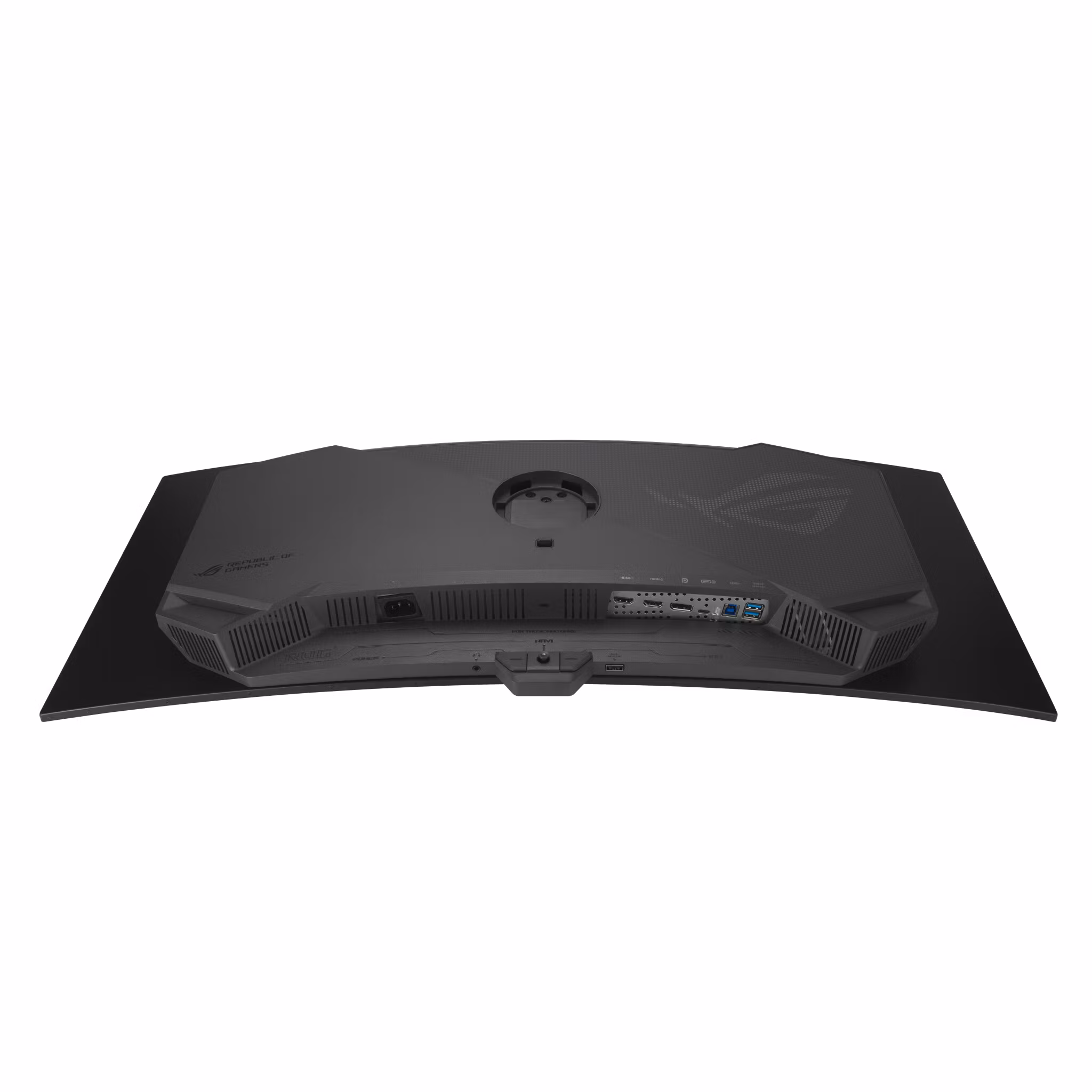 Designen är tydligt präglad av ROG-seriens estetik med en robust konstruktion, stabil fot och full ergonomisk justerbarhet med höjd, tilt och vridning. Det gör att skärmen enkelt kan anpassas för optimal sittställning. Med sina generösa dimensioner och påkostade byggkvalitet är detta en skärm som både visuellt och funktionellt dominerar skrivbordet.