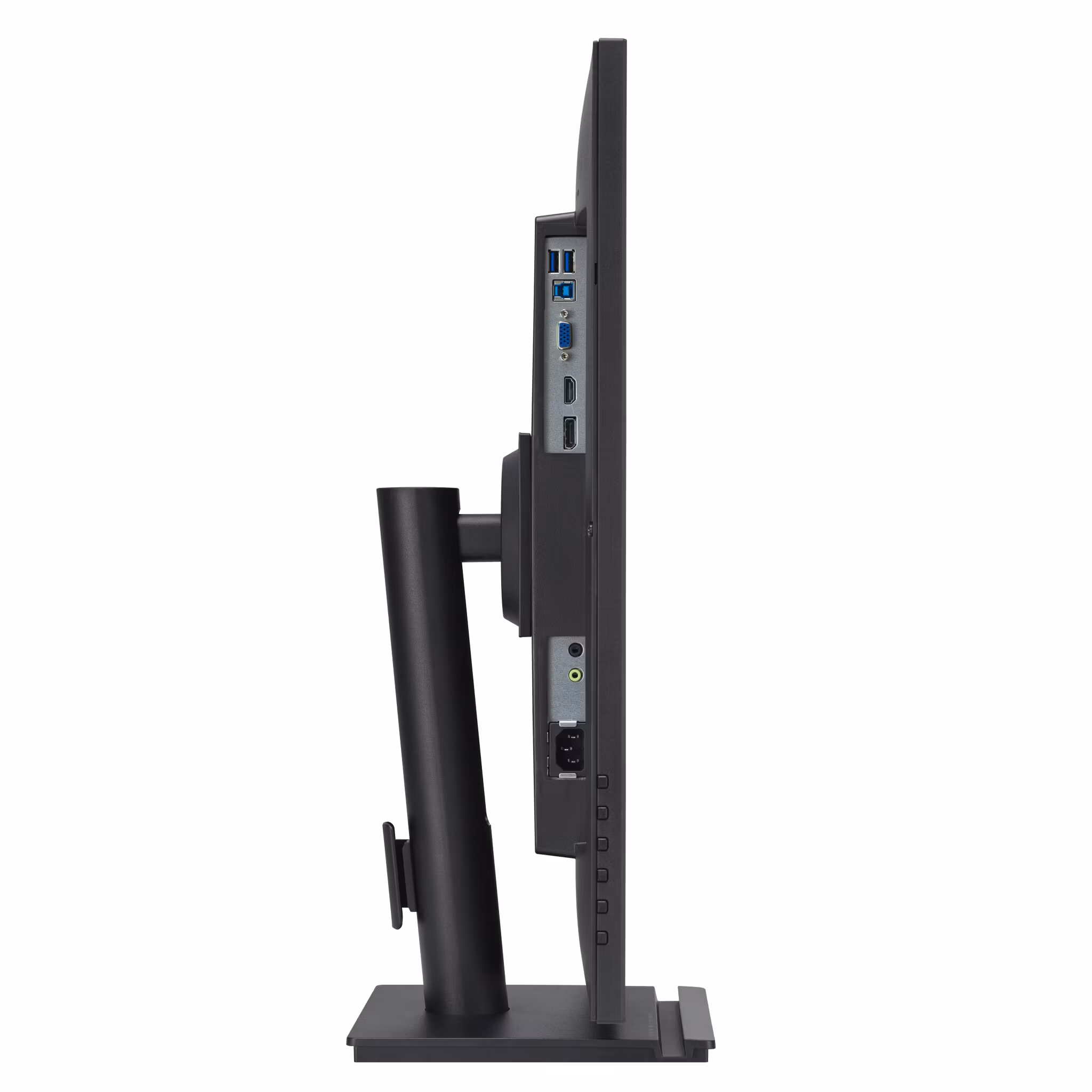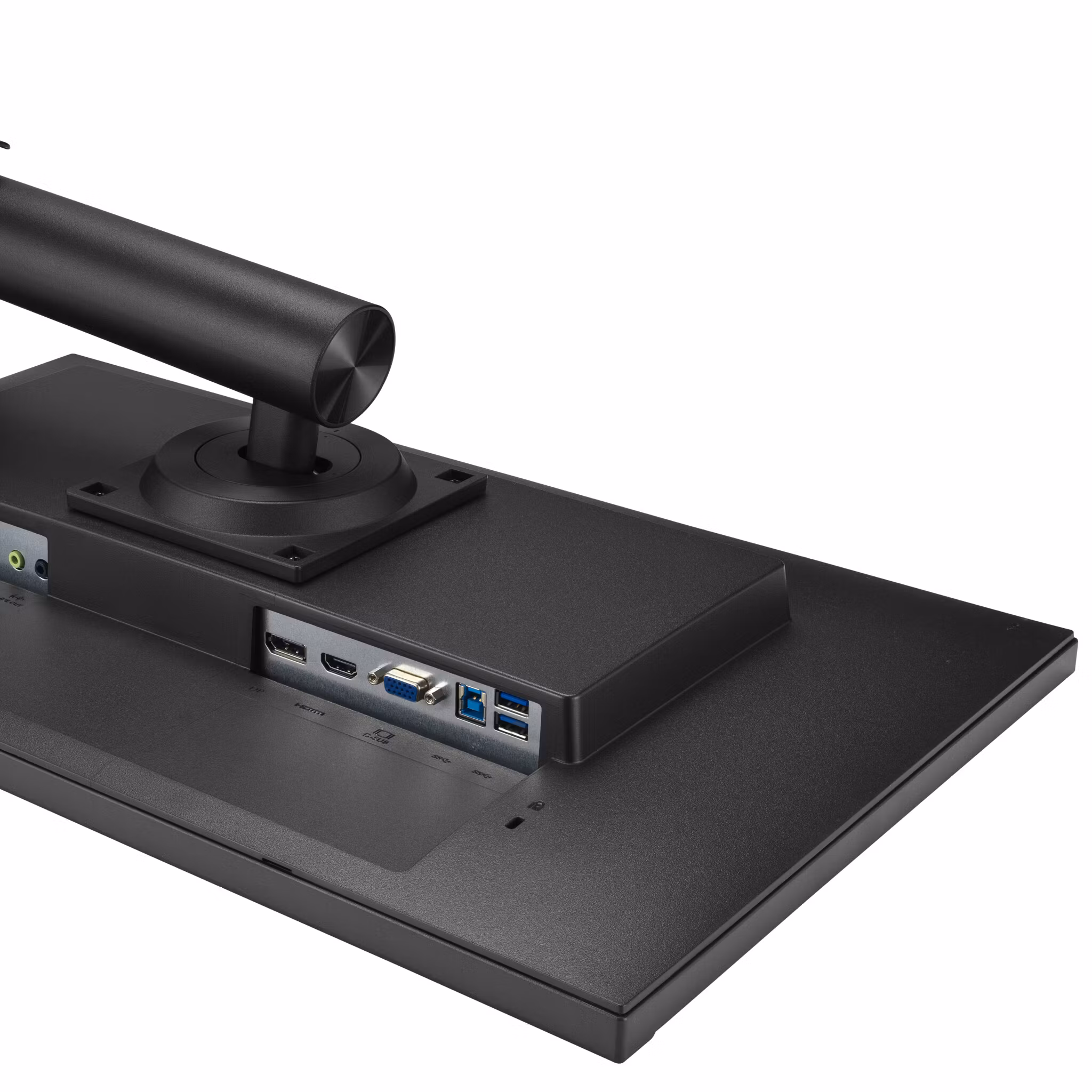 Anslutningarna är generösa med DisplayPort, HDMI och VGA, samt en integrerad USB 3.2 Gen 1-hubb som gör det enkelt att koppla in tangentbord, mus och annan kringutrustning direkt i skärmen. Detta minskar kabeldragning och skapar en mer organiserad arbetsyta.