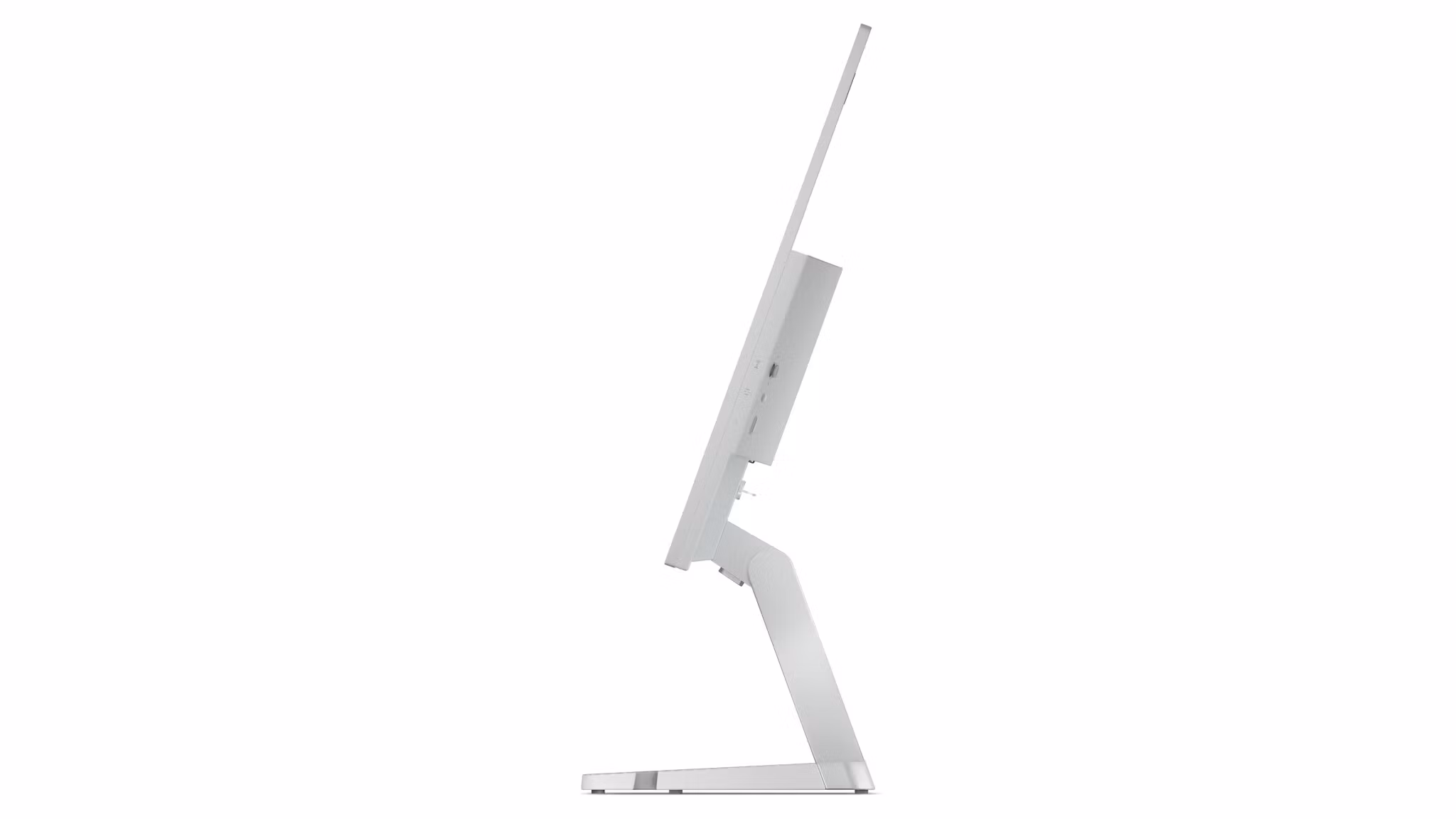 Designen är minimalistisk men samtidigt funktionell. Den tunna ramen och den slanka profilen gör att bilden står i fokus, medan det robusta metallstativet ger stabilitet och en modern känsla. Baksidans matta yta i grått ger ett professionellt intryck, och den justerbara lutningen låter dig anpassa skärmen för optimal ergonomi – perfekt för långa arbetsdagar.