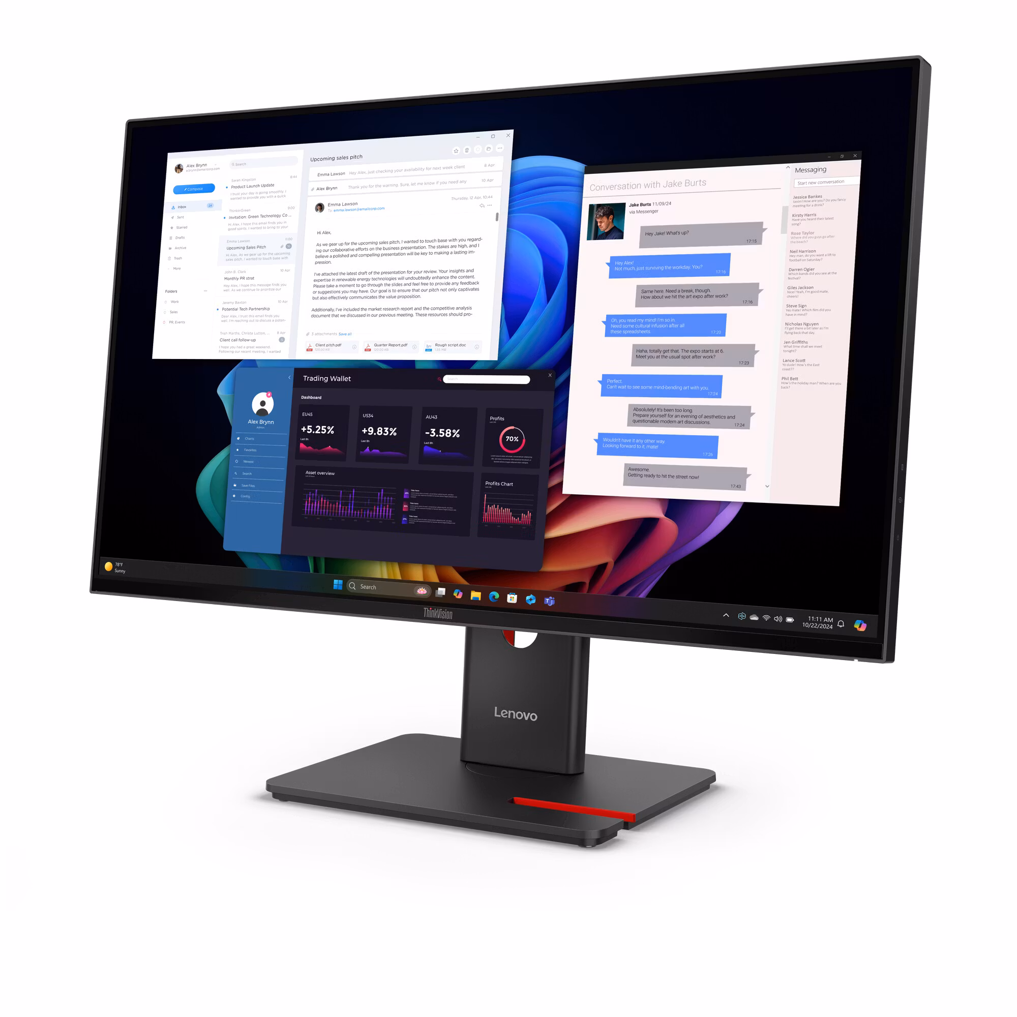 Lenovo ThinkVision T27UD-40 är en högpresterande 27-tums monitor som kombinerar 4K Ultra HD-upplösning (3840 × 2160) med avancerade funktioner för att möta behoven hos professionella användare, kreatörer och ambitiösa hemmakontor. Med sin skarpa bild, breda färgomfång och ergonomiska design är den ett utmärkt val för den som vill ha både precision och komfort i sitt dagliga arbete.