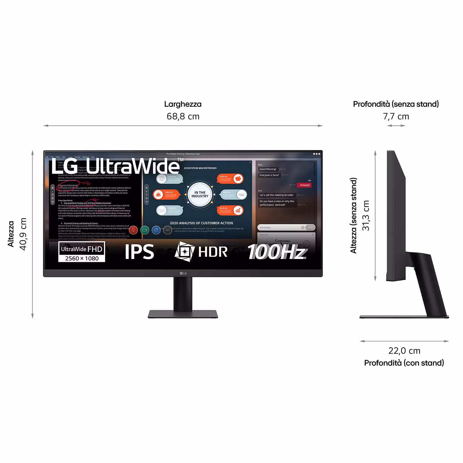 LG 29U511A-B 29" UltraWide IPS WFHD 100Hz monitor är en bredbildsskärm som ger större arbetsyta och förbättrad överblick jämfört med traditionella skärmar. Med