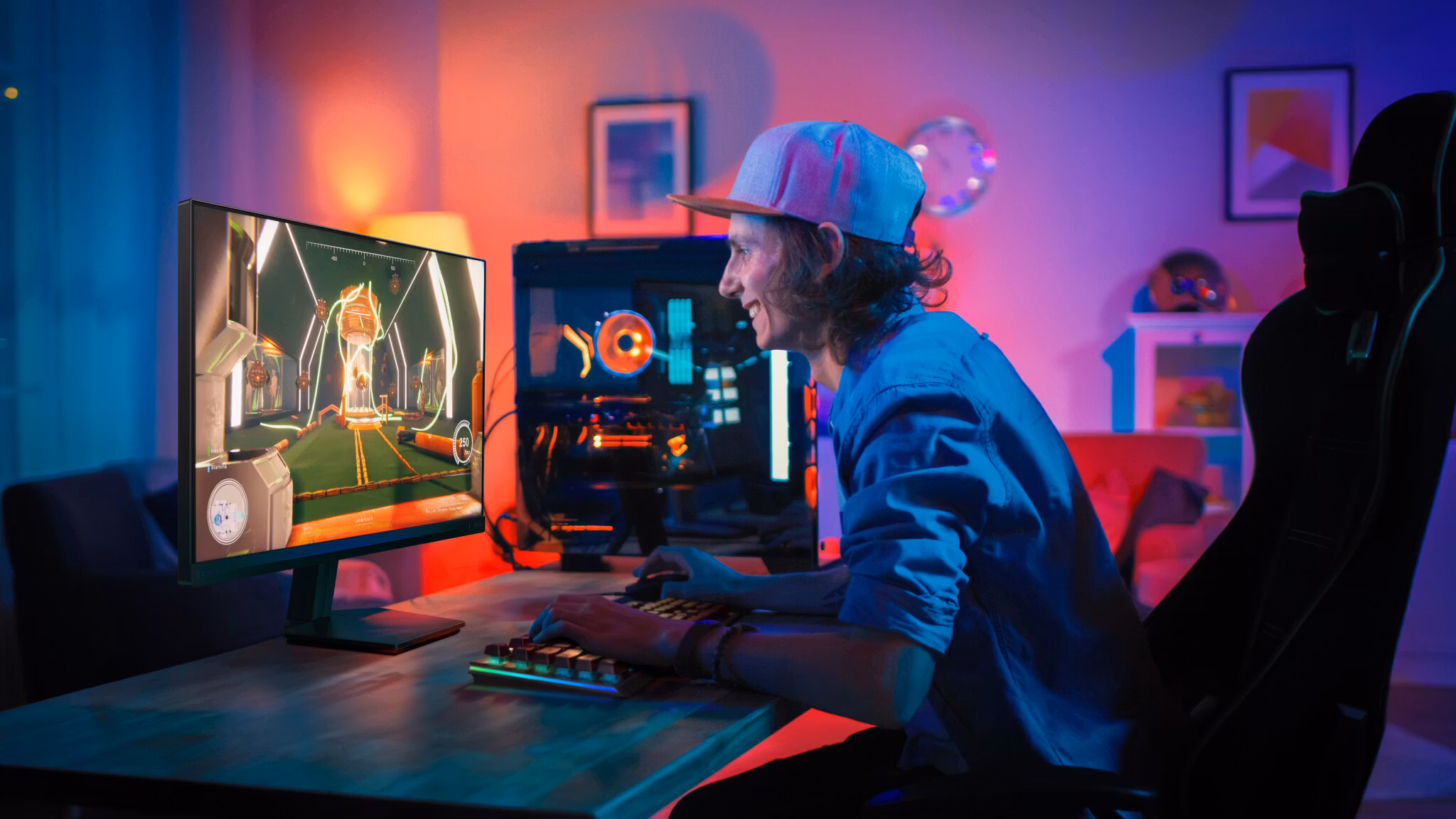 Upp till 144 Hz uppdateringsfrekvens som ger en märkbart mjukare och mer följsam bild vid snabba rörelser, vilket lyfter upplevelsen i såväl FPS- som racingspel jämfört med traditionella 60 Hz-skärmar.