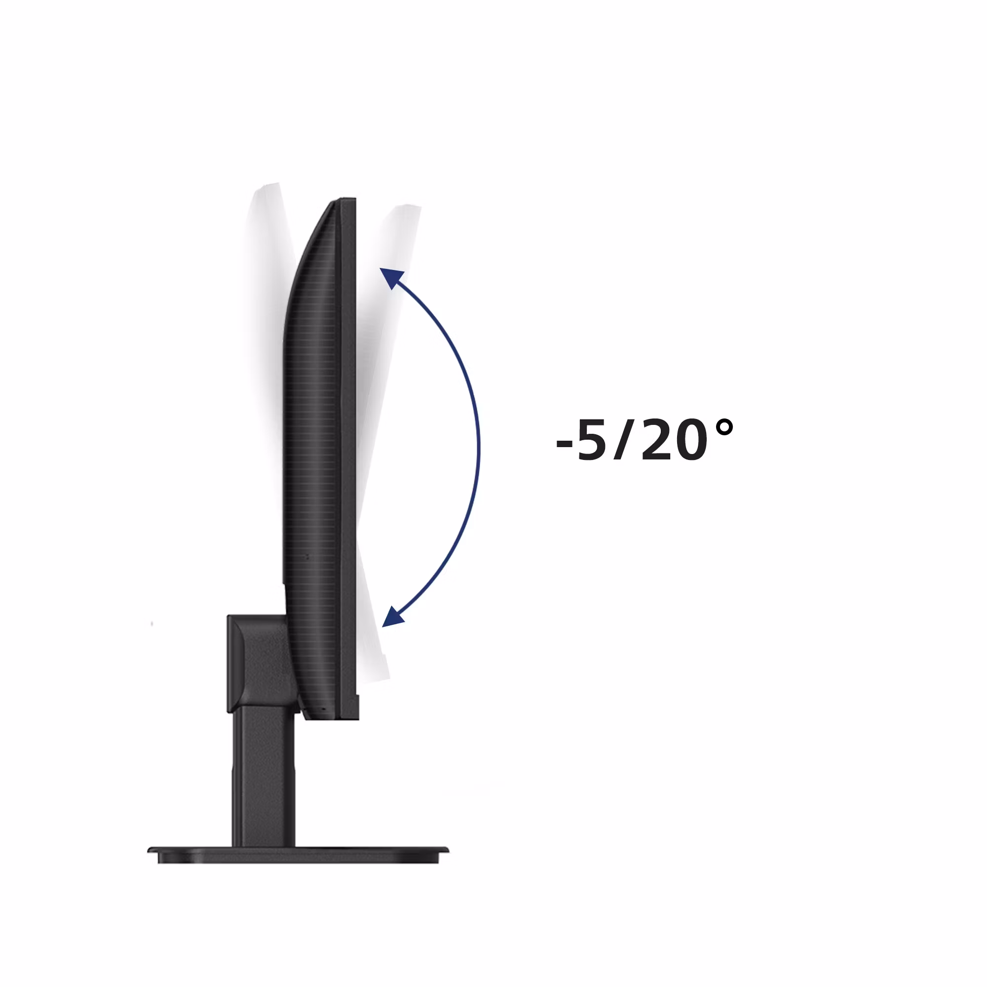 Ergonomiskt stöd – lutning (exempelvis –5° till +20°) och ofta höjdjustering samt VESA-montering 100×100 mm.