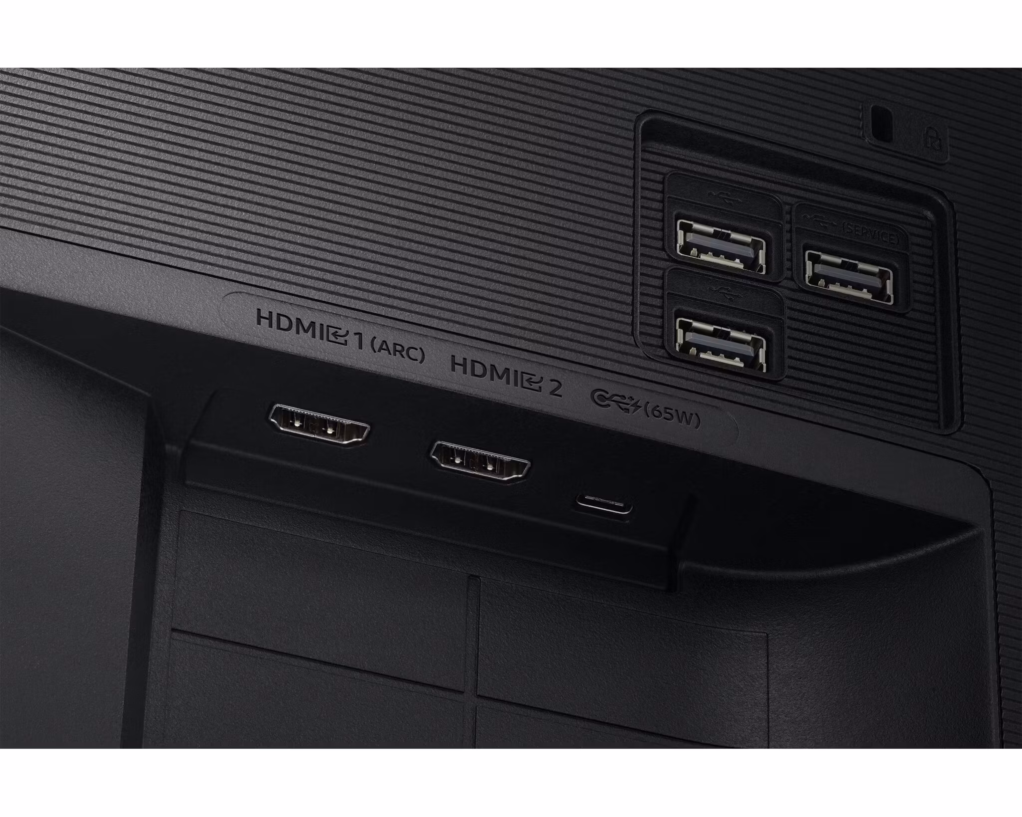 Via USB-C med 65 W Power Delivery kan en bärbar dator anslutas, laddas och överföra bild via en enda kabel. Tillsammans med HDMI-portarna fungerar skärmen lika bra med dator, konsol och andra enheter.