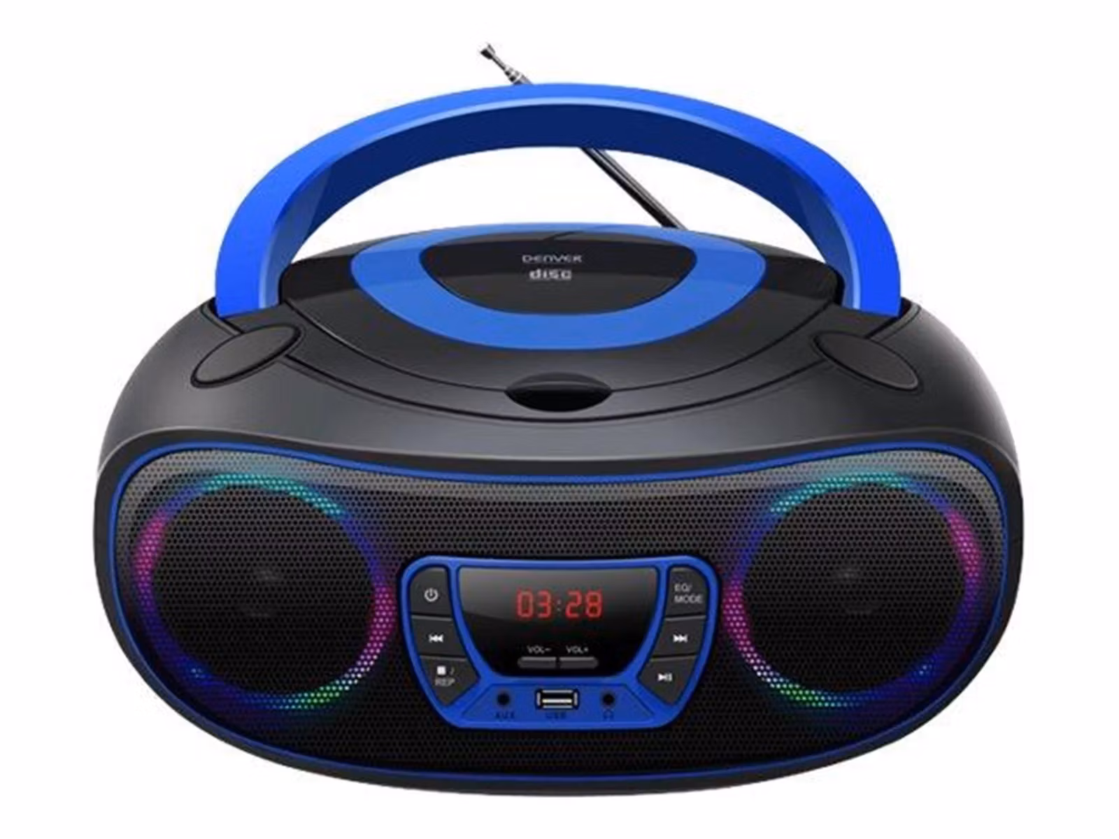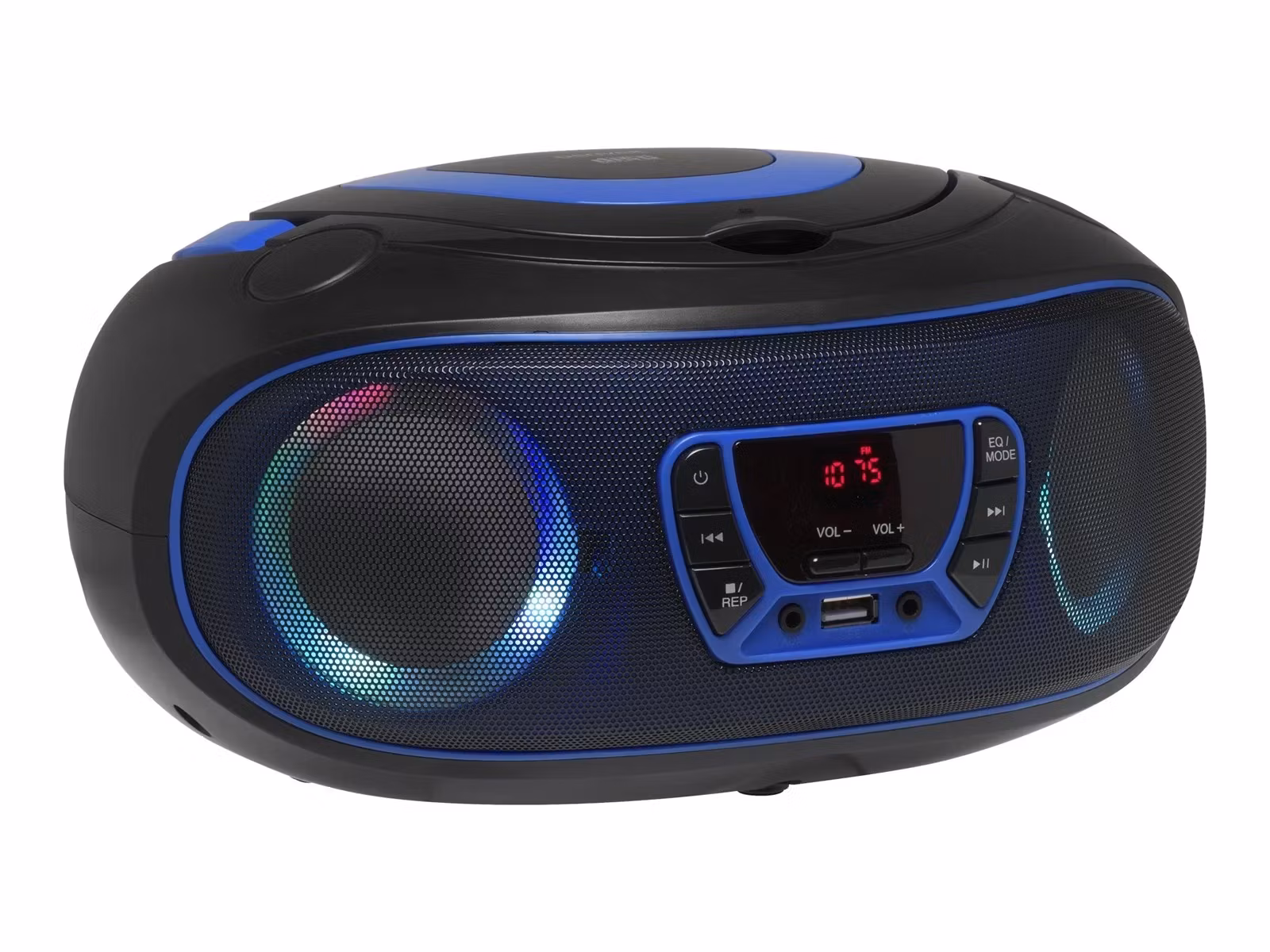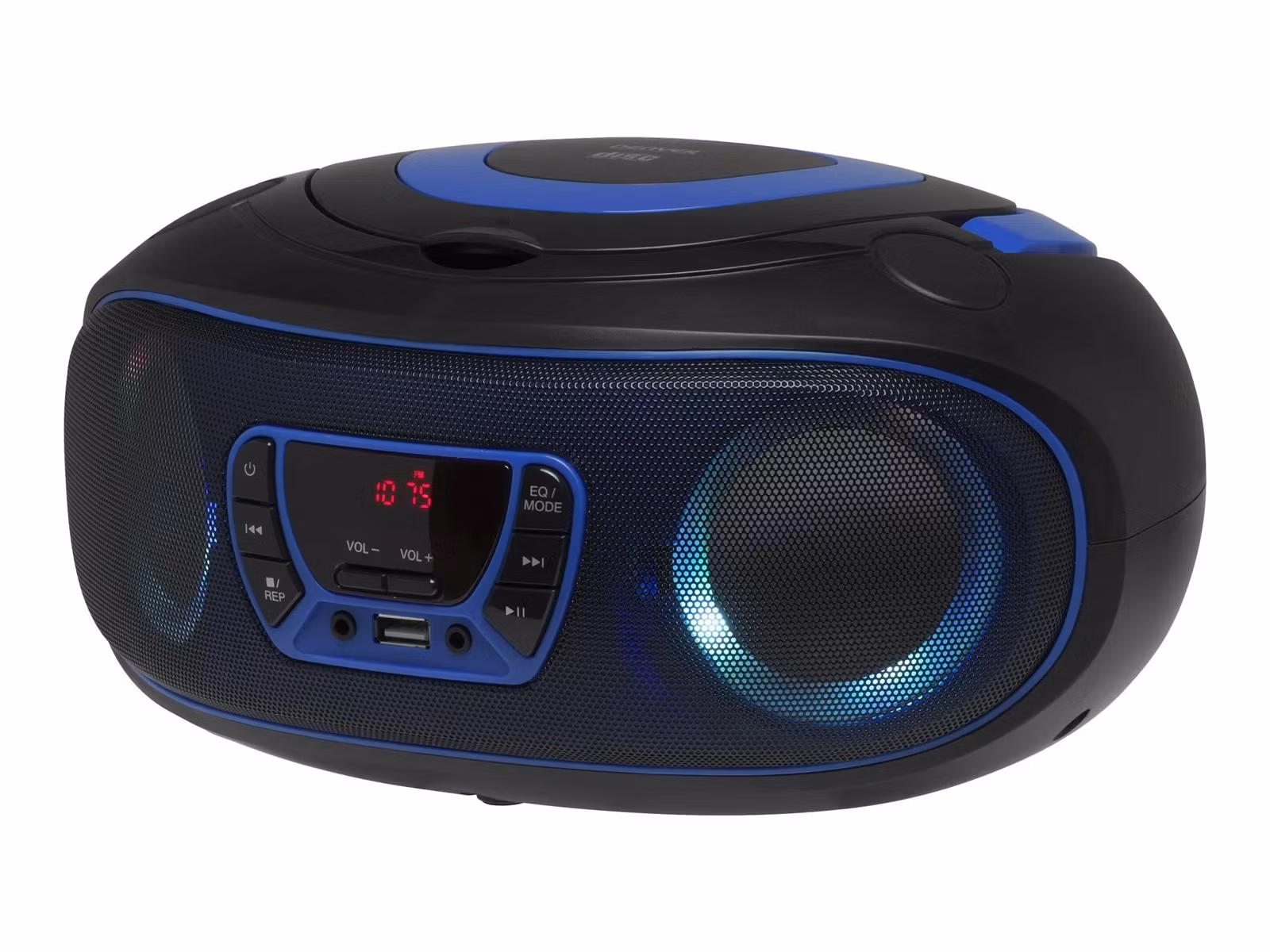 Designen är både modern och praktisk, med tydliga kontroller, LED-display och inbyggda LED-lampor som ger en visuell och lekfull effekt när musik spelas. Detta gör den särskilt populär i barnrum, fritidsmiljöer och festligare sammanhang där ljuseffekter bidrar till stämningen. Den kompakta formen gör den lätt att flytta runt, samtidigt som den robusta konstruktionen känns trygg för daglig användning. Trots sin bärbarhet har den tillräcklig kapacitet för att fylla ett mindre rum med klar stereoåtergivning.