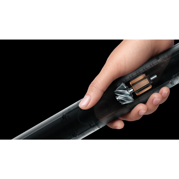 Den sladdlösa konstruktionen drivs av ett kraftfullt batteri som ger upp till 30 minuters driftstid, vilket räcker för rengöring av flera rum på en laddning. Den höga effektiviteten gör det möjligt att utföra vardagsstädning snabbt och enkelt. Den kompakta designen gör dammsugaren enkel att förvara när den inte används.