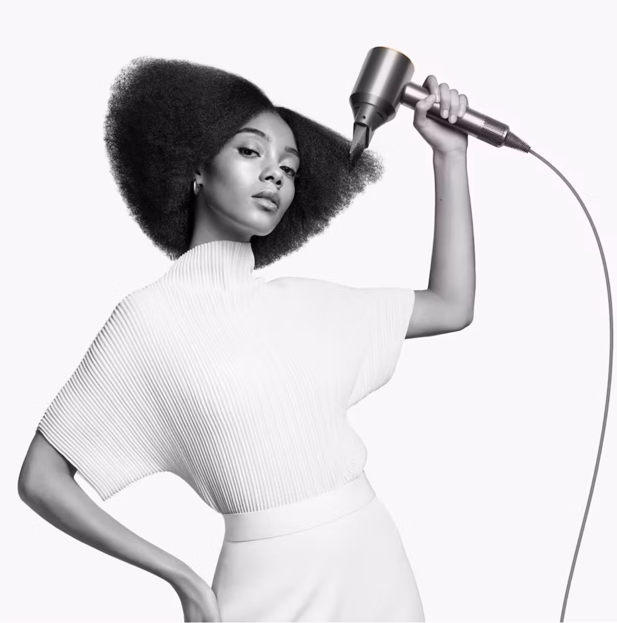 Dyson Supersonic drivs av Dysons digitala motor som snurrar med 110 000 rpm och är extremt lätt och kraftfull. Dessutom är den ergonomiskt placerad i handtaget, inte i huvudet, så du kommer inte ens att känna dess vikt.
