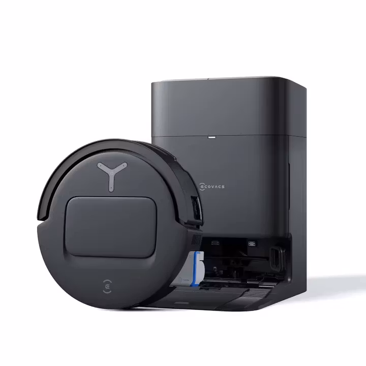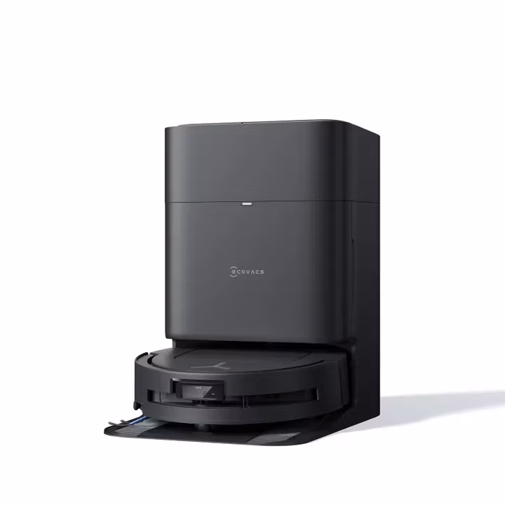 OMNI-stationen hanterar allt underhåll automatiskt: den tömmer dammbehållaren, tvättar mopparna med varmt vatten, torkar dem med varmluft och fyller på rent vatten – vilket innebär upp till 60 dagars helt underhållsfri användning. Styrningen sker enkelt via Ecovacs Home-appen eller med röststyrning via Alexa, Google Home eller Siri.