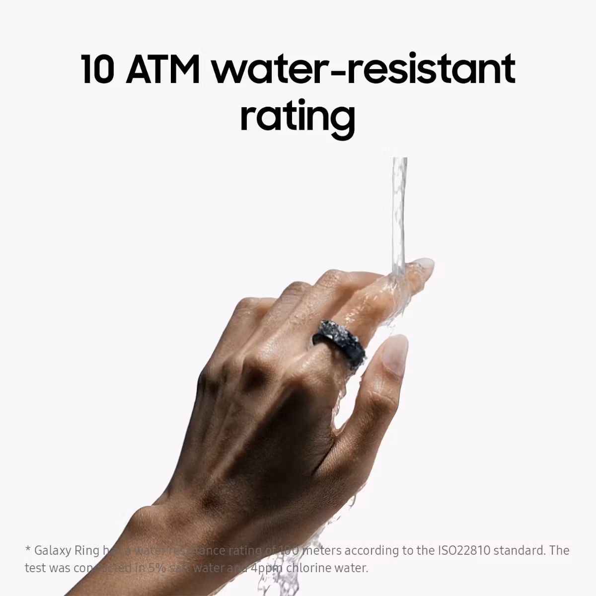 Galaxy Ring är byggd i en hållbar titanram med reptålig finish. Tack vare 10ATM och IP68-klassning är ringen inte rädd för att bli blöt. Du kan ha den på dig när du duschar, tvättar händerna eller när du simmar. *