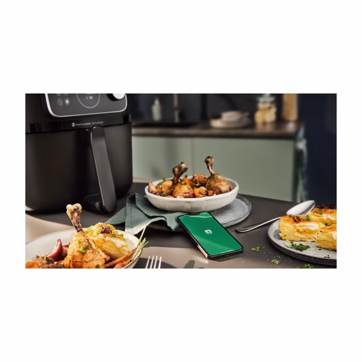 Philips HD9876/90 Combi XXL Connected Airfryer Svart är mer än bara en luftfritös. Den kan även rosta, grilla, baka, tillaga från fryst och torka, för att nämna några av dess mångsidiga funktioner. Med sin generösa kapacitet på 8,3 liter är den perfekt för att hantera storkok eller laga mat till en stor familj. För inspiration och vägledning i matlagningen kan du ladda ner HomeID-appen och koppla den till din airfryer.