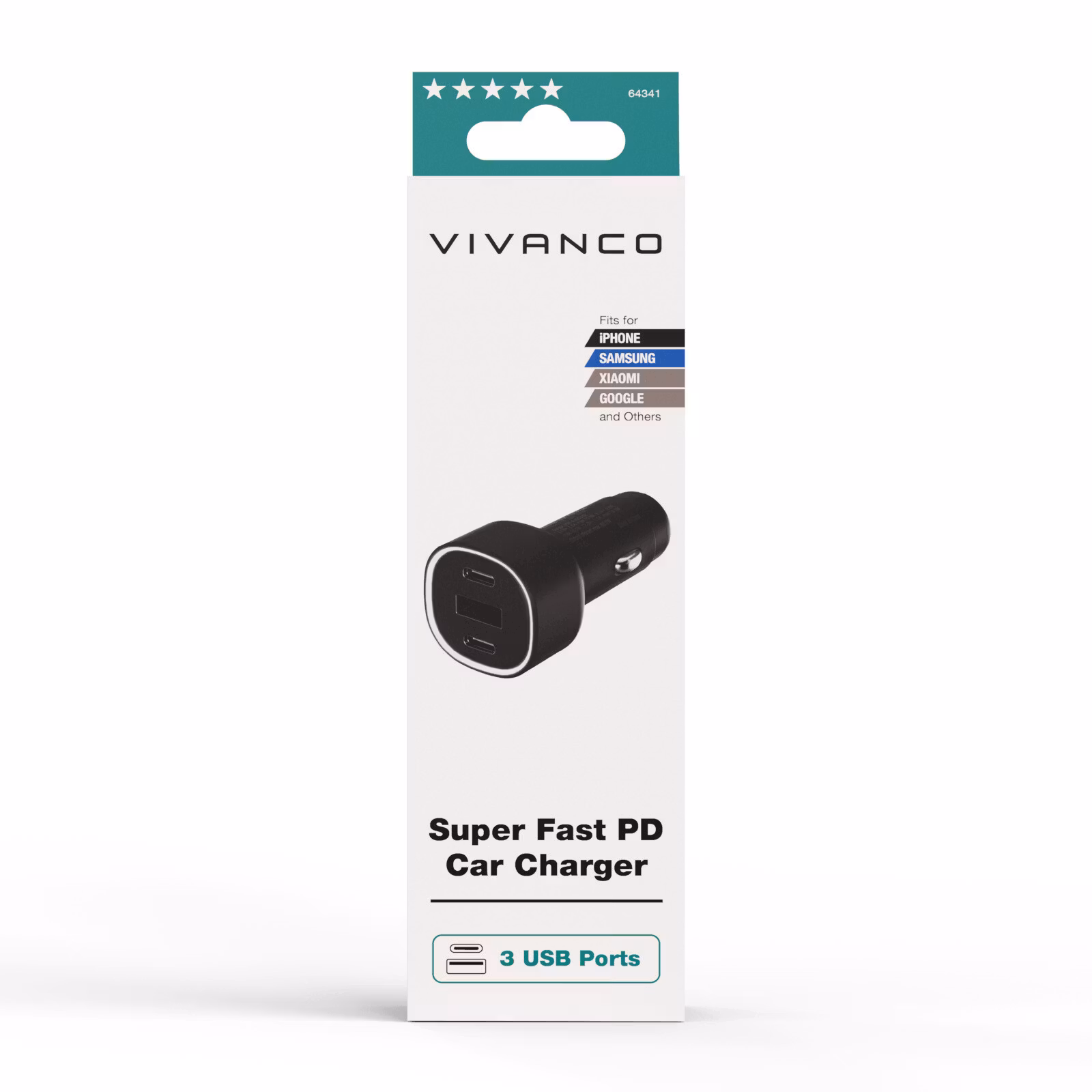 Vivanco Supersnabb 60W Billaddare 2xUSB-C 30W / 1xUSB-A 18W är en kraftfull billaddare utvecklad för användare som vill kombinera snabbladdning, flera samtidiga
