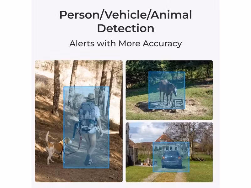 Smart detektion – människor, fordon och djur – reducerar falsklarm och ger relevanta notiser i realtid, vilket gör systemet effektivare.