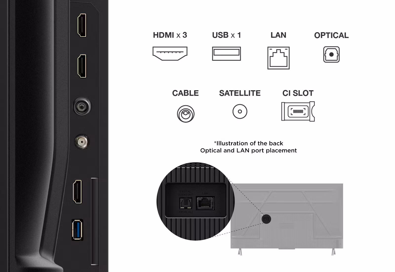 3 HDMI-portar och 2 USB-portar för flexibel anslutning