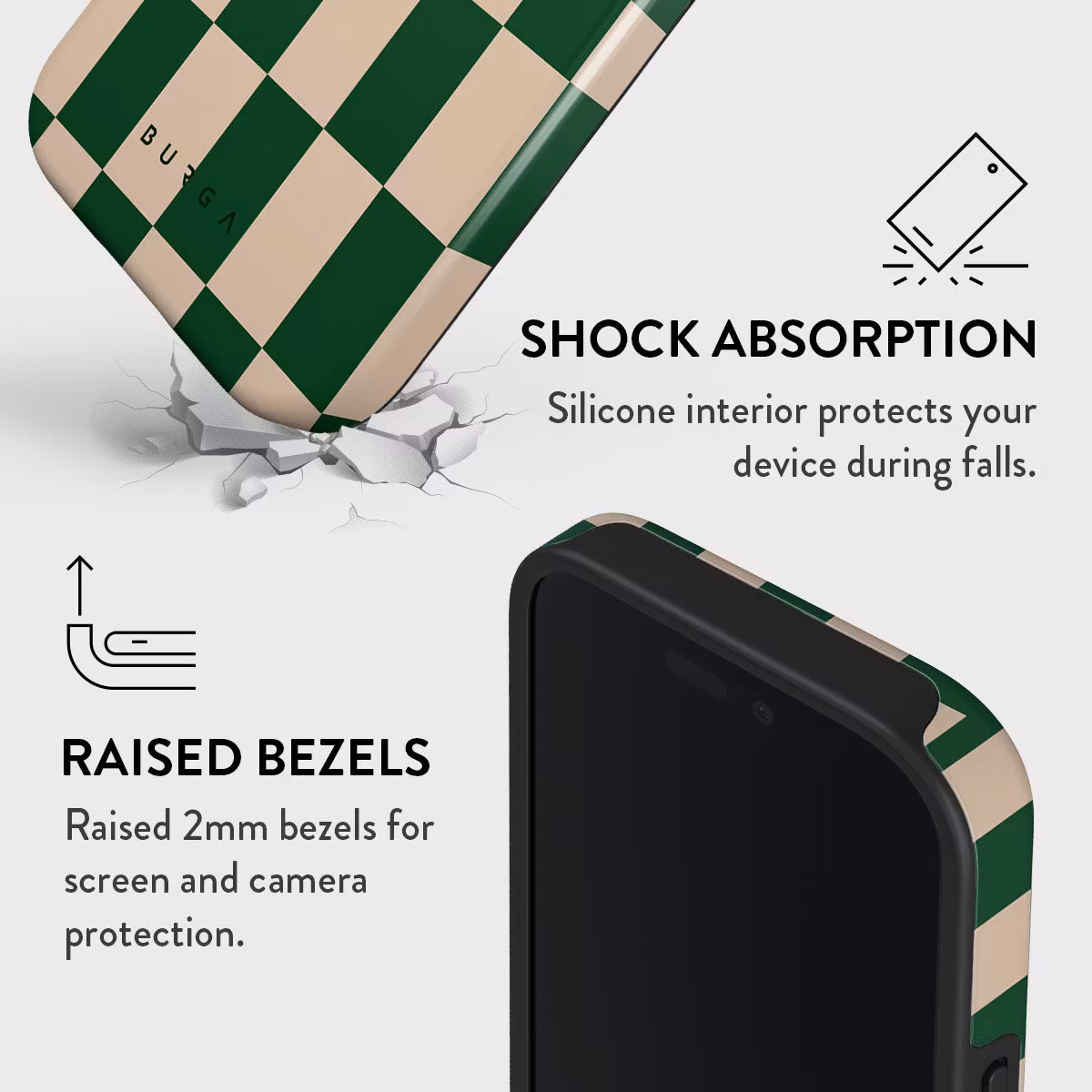 Tough-konstruktion i två lager som absorberar stötar och skyddar telefonen effektivt