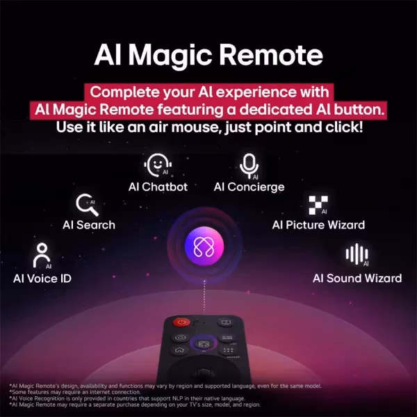 Smartfunktionerna bygger på LG:s senaste system med webOS 25, vilket innebär att du får en snabb och intuitiv plattform med appar, röststyrning och smarta hemfunktioner. En uppdaterad Magic Remote-fjärrkontroll (beroende regionmodell) ger dig möjlighet att styra både TV och kompatibla enheter med röst och pekfunktioner. Plattformen ger dig tillgång till streamingtjänster, delning via AirPlay och Google Cast samt möjlighet att ansluta och styra andra smarta enheter i hemmet.