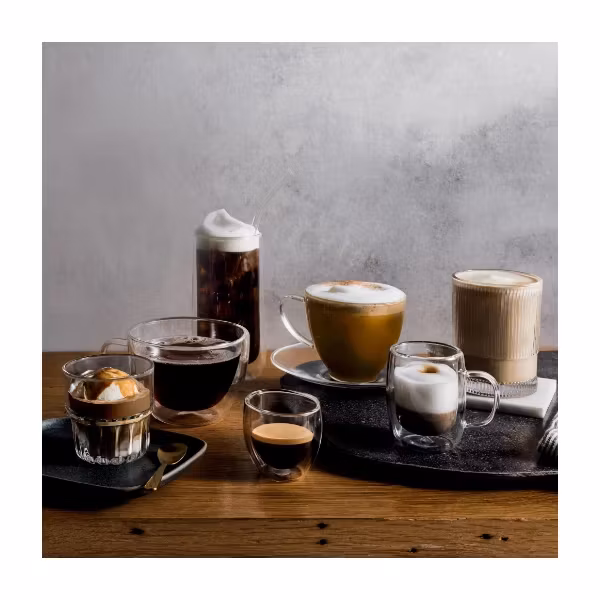 - Flera bryggtyper och dryckesstorlekar – kaffebryggning, espressoshots, stora termokannor och iskaffe