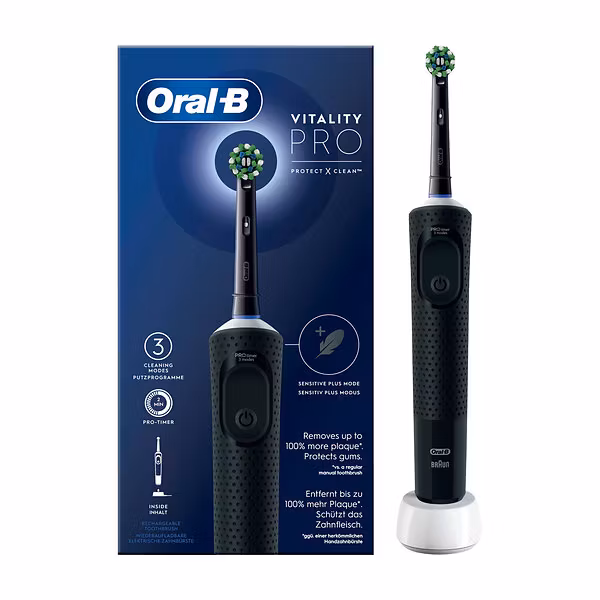 Vitality Pro är en av Oral-B:s mest populära modeller eftersom den kombinerar tillförlitlig teknik med överkomligt pris och pålitlig kvalitet. Den passar både nya användare av eltandborste och dem som vill ha ett uppgraderat alternativ till äldre modeller.