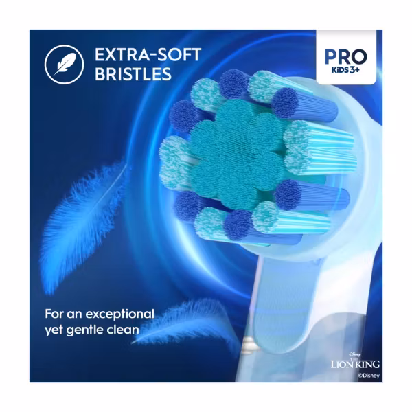 Oral-B Vitality Pro Kids Lion King Eltandborste är ett utmärkt val för föräldrar som vill lägga grunden till god munhälsa hos sitt barn på ett enkelt, engagerande och tryggt sätt. Kombinationen av lekfull Lejonkungen-design, barnanpassad teknik och funktioner gör borstningen till något barnet ser fram emot – inte något man behöver tjata om. Den rundade borsten, de mjuka borststråna och de två lägena säkerställer att barnets mun rengörs skonsamt men effektivt, vilket är särskilt viktigt vid yngre åldrar.