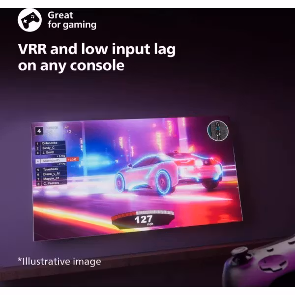 Skärmen drivs av Philips kraftfulla Pixel Precise Ultra HD-motor, som analyserar och optimerar varje bildruta för att ge förbättrad skärpa, färgprecision och kontrast. Detta gör att både film, serier och spel upplevs mer detaljerat och dynamiskt, även vid innehåll som inte ursprungligen är producerat i 4K. Kombinationen av 60 Hz panel och Variable Refresh Rate (VRR) gör dessutom att rörelser återges mjukt, vilket är särskilt märkbart vid sport och gaming.