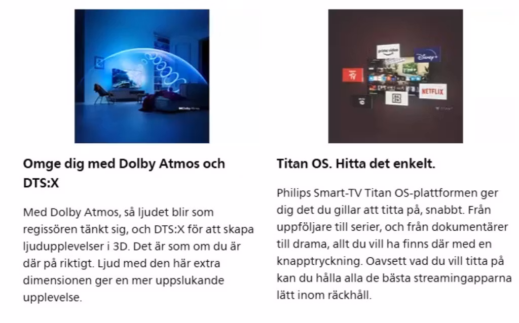 | Unik funktion | Ambilight 3-sidors bakgrundsdesign |