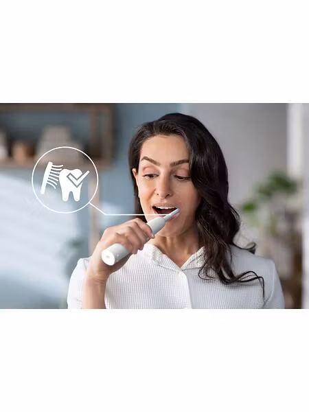 Eltandborsten är utrustad med en inbyggd trycksensor som känner av om du trycker för hårt mot tänder och tandkött. Om du borstar med för hög kraft varnar tandborsten genom att ändra känslan i vibrationerna eller indikera tydligt, så att du kan lätta på trycket. Detta är särskilt viktigt för dig som har känsligt tandkött, lättblödande tandkött eller vill undvika att slita i onödan på emaljen. Du får hjälp att borsta rätt – inte bara rent.