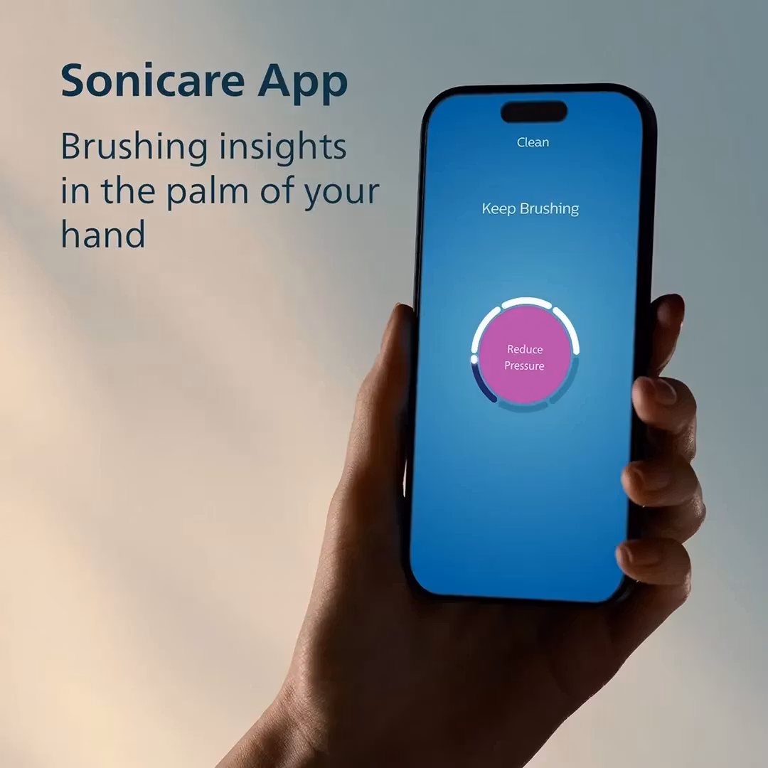 Trycksensor med automatisk justering – skyddar tänder och tandkött vid för hård borstning.