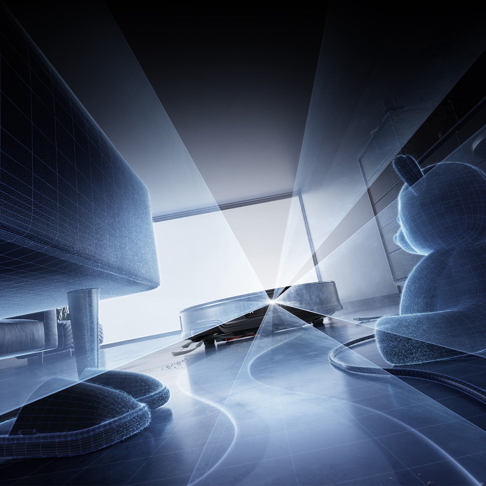 Till skillnad från 2D-sensorer i vanlig LDS så skannar det banbrytande 3D Time-of-Flight (ToF)-systemet omgivningen i 3D vilket ger exakt navigering och perfekt kartläggning. Men samma precision som ansiktsigenkänning navigerar den smidigt i komplicerade utrymmen som väggmonterade möbler, och tar hand om städutmaningar som aldrig förr.