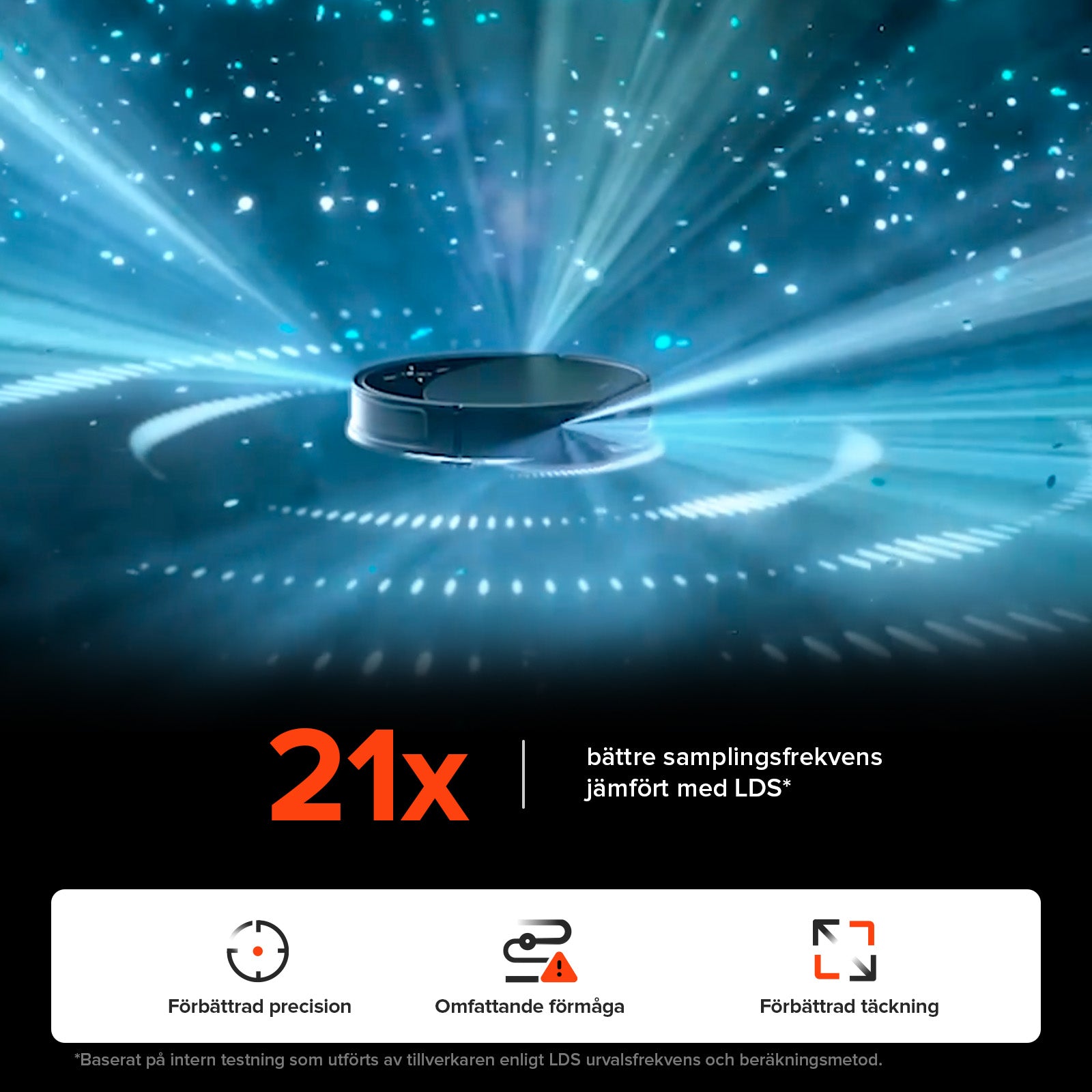 VertiBeam Lateral Obstacle Avoidance - Avancerad teknik för att undvika hinder i sidled gör att Saros 10R kan upptäcka och manövrera runt oregelbundna möbler och väggar, vilket säkerställer en omfattande rengöring utan onödiga stötar.