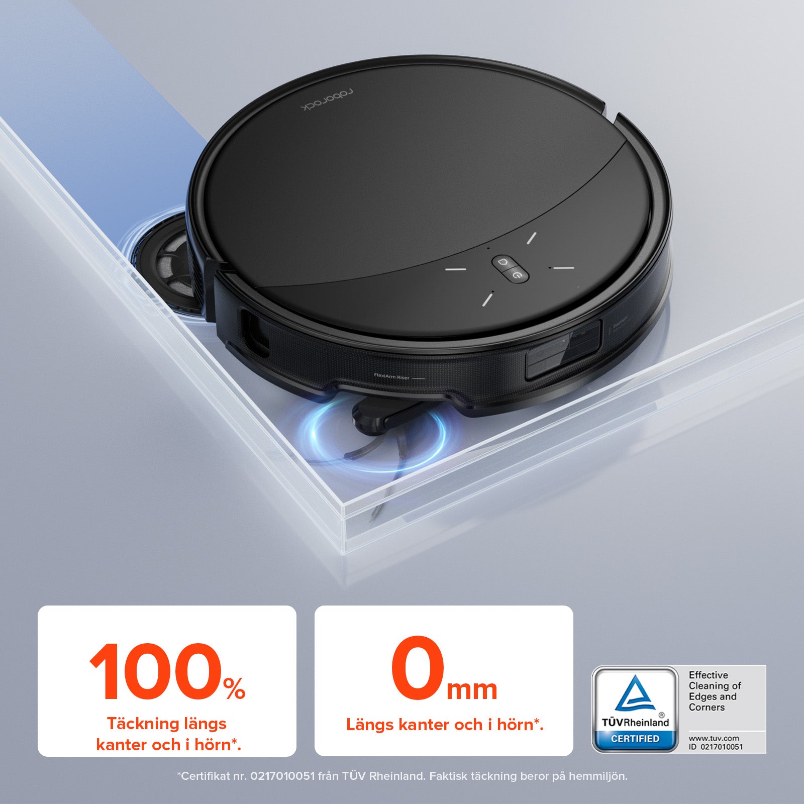 FlexiArm™-teknologin driver dubbla robotarmar så att sidoborsten och moppen enkelt kan svepa bort smuts från hörn, längst kanter och under möbler. Den säkerställer en heltäckande städning utan blinda fläckar för en verkligt noggrann städning.