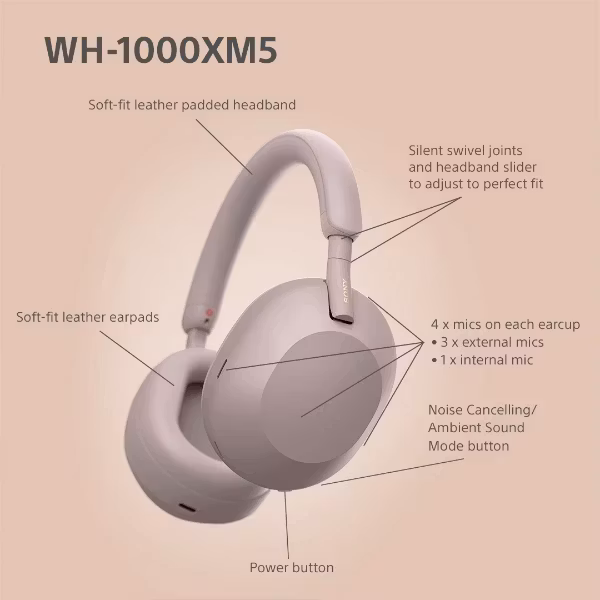 Sony WH-1000XM5 Smoky Pink – perfekt balans mellan premiumljud, tystnad och stil