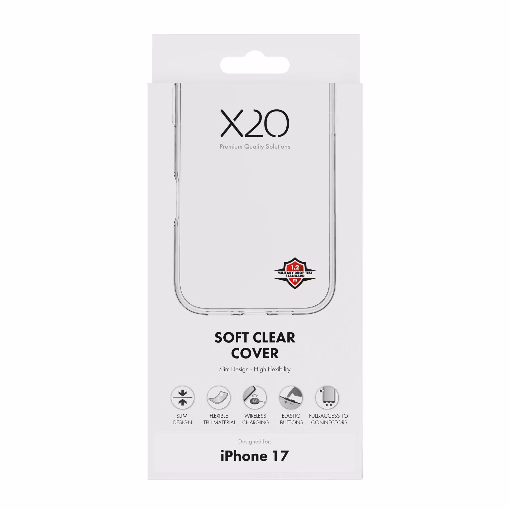 X2O Clear Soft är ett lätt och smidigt mobilskal som ger ett balanserat skydd för iPhone 17. Det är särskilt lämpligt för användare som vill behålla telefonens design synlig samtidigt som de skyddar den mot dagligt slitage.