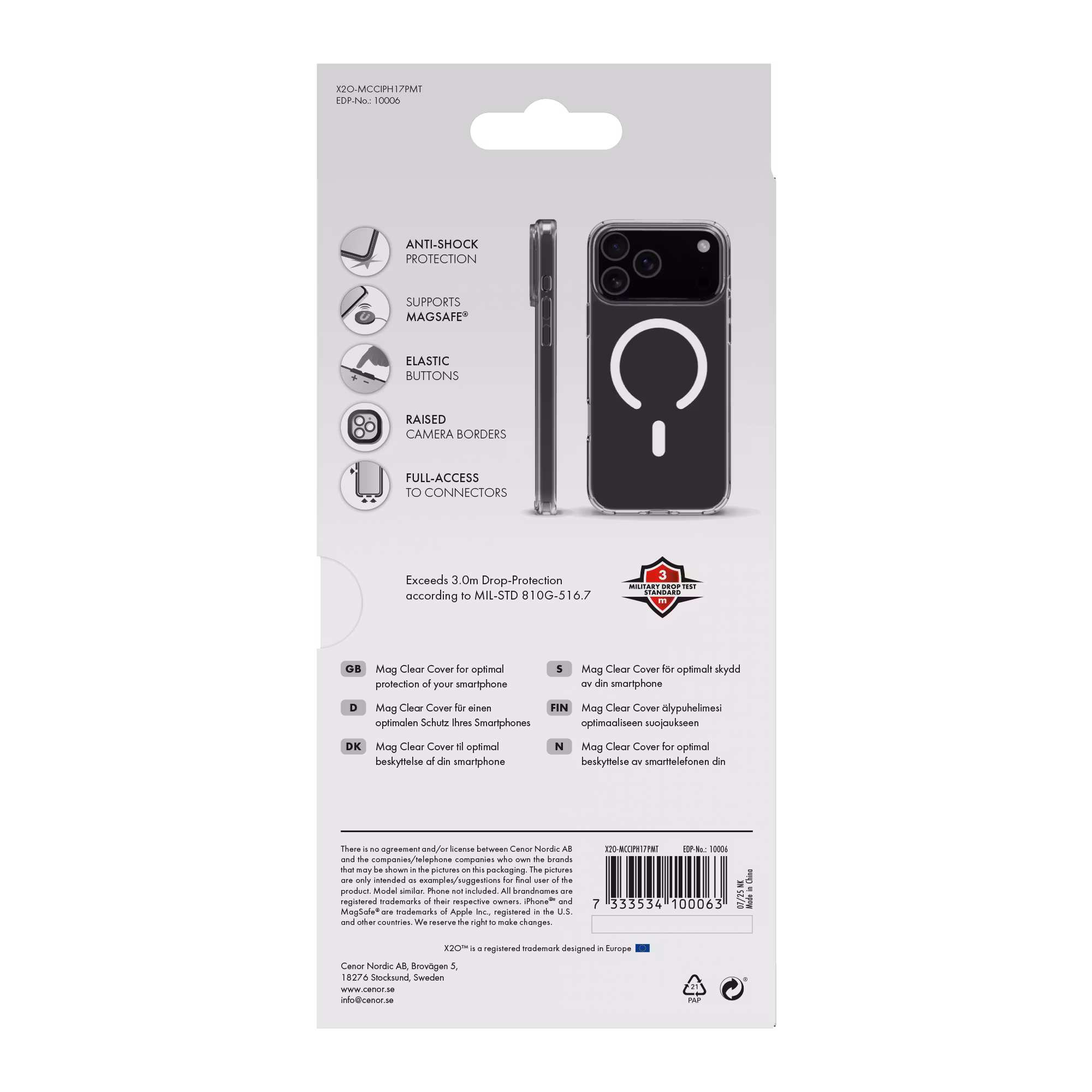 X2O Mag Clear Skal Apple iPhone 17 Pro Max Klar är ett transparent mobilskal som är utvecklat för att ge ett pålitligt skydd samtidigt som telefonens originalde